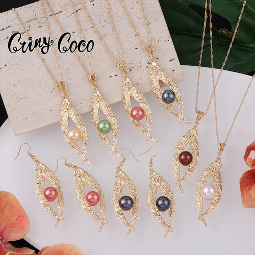 Cring Coco 2021 Earrings Necklace Set Hawaiian Polynesian Samoa Gold Colorful Pearl Pendant Necklace Jewelry Set for Women Girls